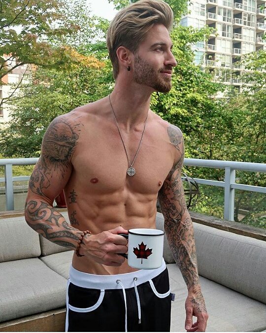 Buongiorno 🍵 with Travis DesLaurier @travbeachboy #travisdeslaurier #malemodel #men #sexy #dude #hot #handsome #scruff #lips #torso #sixpack #fit #ink #maleform #tattoo #style #cute #hunk #gorgeous #hotguys #sexymen #malemodels